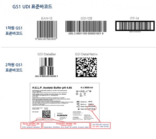 UDI는 크게 3가지로 구성되어 있는데, 첫째는 의료기기 고유식별코드(Identifier)이고, 두 번째 표준은 해당 식별코드를 기계가 읽을 수 있도록 만든 바코드(BarCode)이며, 마지막으로 의료기기 정보가 저장된 데이터베이스(Database)이다.