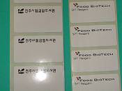 * 4~8색 동시에 칼라 인쇄로 로고, 특수그림, 기호, 문자, 동일 바코드 인쇄까지 가능하며, 프린터용 라미네이팅과 전산 라벨용 전산 펀칭 몰드를 장착하여 원하시는 칼라에 맞추어 라벨 인쇄 작업. * 라벨 제작함에 있어서 프린터로 바코드 리본을 이용 바코드 및 데이타 인쇄시 지워짐을 보완할 수 있는 UV 잉크 코팅 처리하여 제작. |